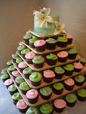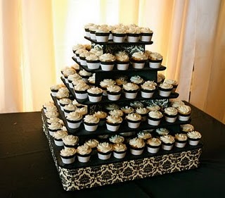 Cupcakes are a great alternative to a huge wedding cake. You don't have to ask your friends or relatives to do the messy job of cutting and serving the cake, it's cheaper and your guests will get a larger serving of cake.